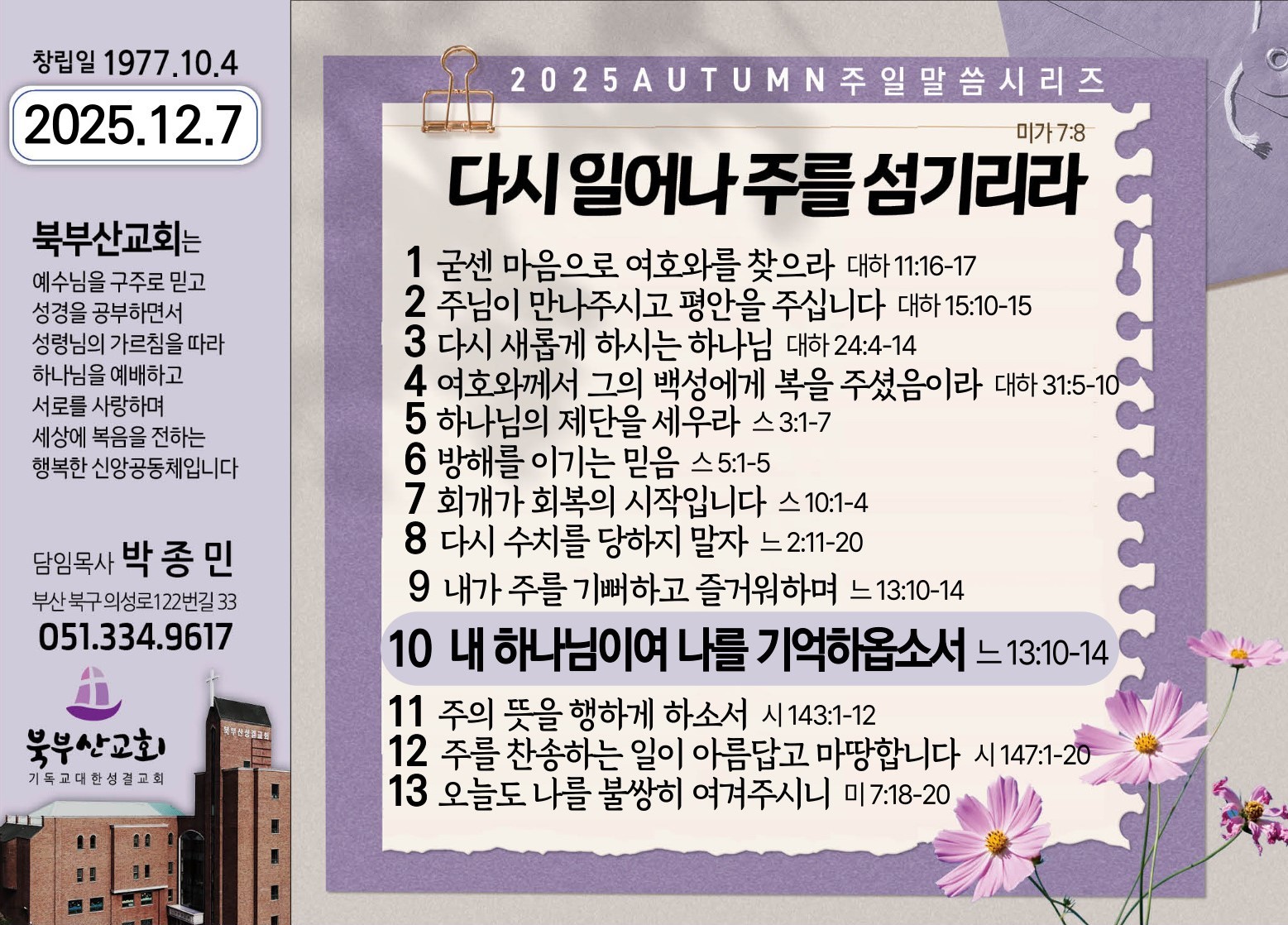 HOME > ÀºÇýÀÇ ¸»¾¸ > ÁÖÀÏ¿ÀÀü¿¹¹è