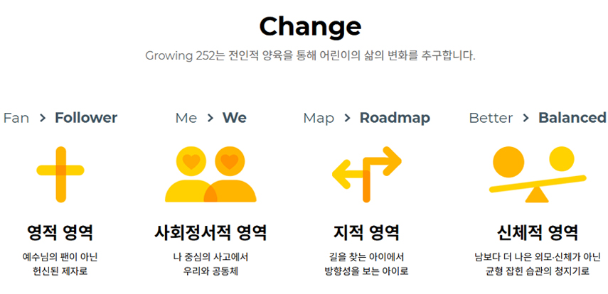 ±×·ÎÀ×252´Â Çѱ¹ÄÄÆÐ¼Ç°ú ±³È¸°¡ Çù·ÂÇÏ¿© 5-10¼¼(¸¸ 4-9¼¼) ¾î¸°À̸¦ ´ë»óÀ¸·Î Á¦°øÇÏ´Â ÁÖÁß ±³È¸ ÇÁ·Î±×·¥À¸·Î ¾î¸°À̸¦ ¿µÀû, »çȸÁ¤¼Àû, ÁöÀû, ½ÅüÀûÀÎ ¿µ¿ª¿¡¼ ÀüÀÎÀûÀ¸·Î ¾çÀ°ÇÏ¿© ¼º°æÀû ¼¼°è°üÀ» °¡Áø Ã¥ÀÓ°¨ ÀÖ°í ¿µÇâ·Â ÀÖ´Â ¸®´õ·Î ¼ºÀåÇϵµ·Ï ÇÕ´Ï´Ù.
